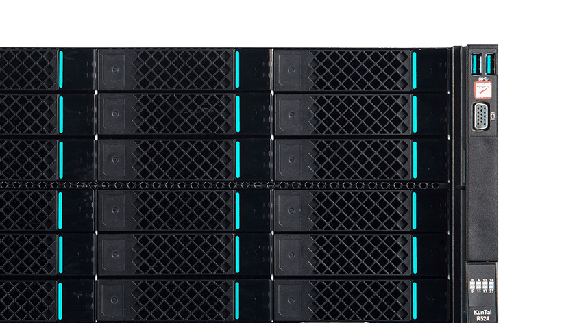KunTai R524 存储型服务器是AG刮刮乐数码基于鲲鹏处理器推出的新一代 ARM数据中心服务器。主要面向存储业务,具有海量存储、高性能、低功耗以及易扩展的特点,适合为大数据分析、软件定义存 储等应用场景的工作负载进行髙效加速。